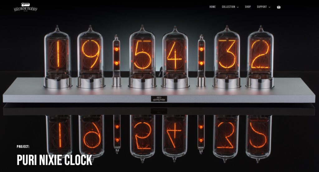 Dalibor took it upon himself to make his own nixie tubes from scratch. Think about that for a moment. He resurrected an old and very charming display technology and honed his craft over many years, culminating in some truly beautiful time pieces (daliborfarny.com). I’ve had the pleasure of knowing him for over a decade now and am honored to call him a good friend. When he asked me if I would help him with sales of his clocks in the USA I jumped at the chance to collaborate. As such, I help him fulfill orders within the continental US and also offer repair service and assistance as necessary to his customers. If you need help with your Blub, Puri or other clock, then feel free to contact me here.